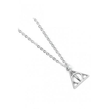 El colgante en metal bañado en plata (15 mm) con una cadena en metal bañado en plata (47 cm de largo) de Harry Potter. Vienen en un Blíster.